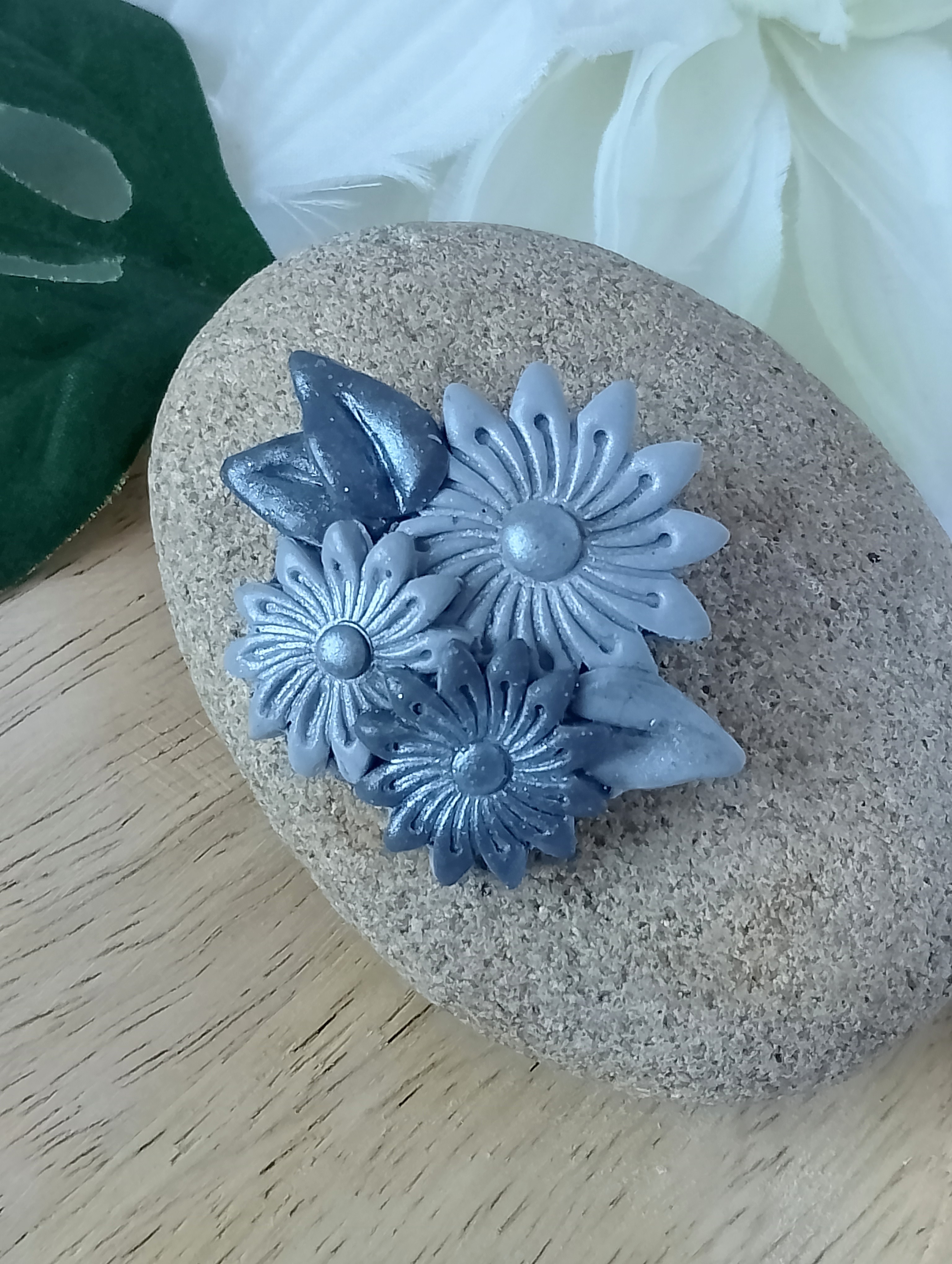 Broche florilège d’automne grise, réalisation artisanale