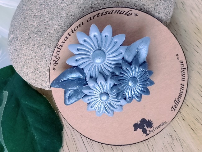 Broche florilège d’automne bleu, réalisation artisanaleAutres Broches