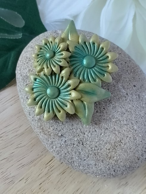Broche fleur, flower verte collection Joséphine éclat de couleurs, réalisée à la main en argile polymère.Broches Flowers