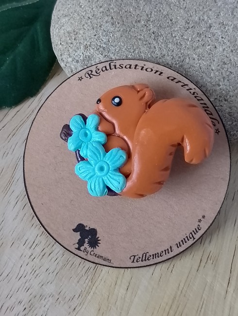 Broche écureuil/ fleurs,réalisation artisanaleAutres Broches