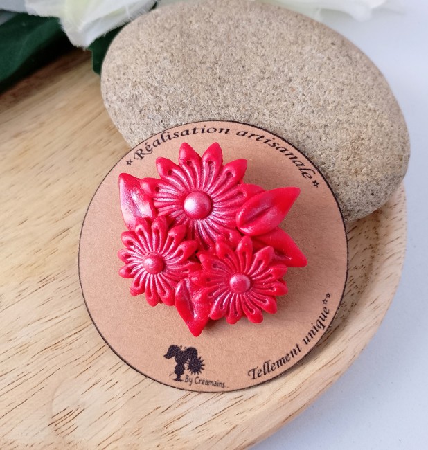 Broche fleur, flower collection Joséphine éclat de couleurs, réalisée à la main en argile polymère.Broches Flowers